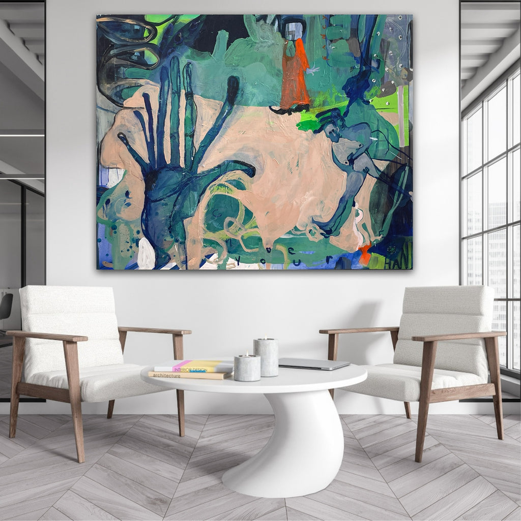 The veils of color intermingle and create layers of depth in this piece.